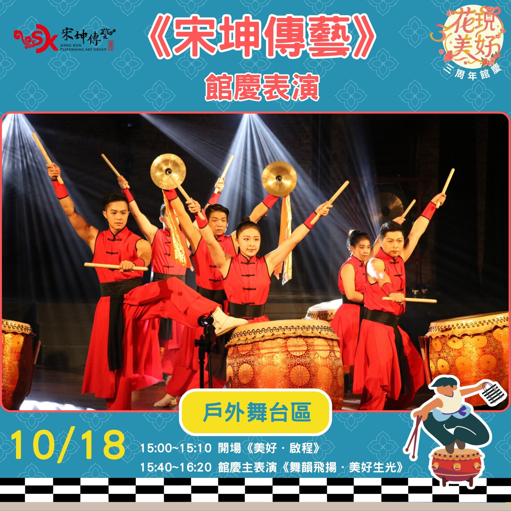 宋坤傳藝 x 天選 THE CHOSENs 聯手演出,戰鼓磅礴震撼,太極鼓舞結合時尚電子鼓,節奏綿延不斷。搭配花神組曲,以國風電音融合彩扇舞、流行樂與國樂,絲巾飛舞間帶領觀眾踏上一場跨越古今的詩意旅程。